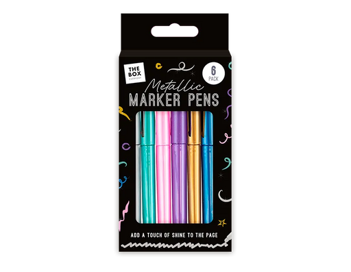 View full detailsPack of 6 metallic markers with shimmer ink, ideal for creative writing, drawing, decorating, and craft projects. This pack of marker pens contains...