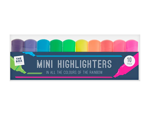 View full detailsPack of 10 mini highlighters in assorted colours, designed in a compact pocket-size format for easy carrying and storage. Ideal for highlighting no...