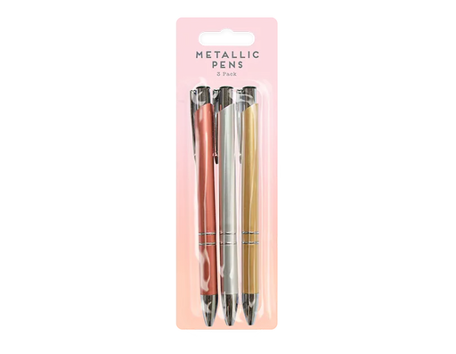 View full detailsPack of 3 metallic finish ballpoint pens designed for smooth everyday writing with a stylish look. Ideal for office, school, and home use. The meta...